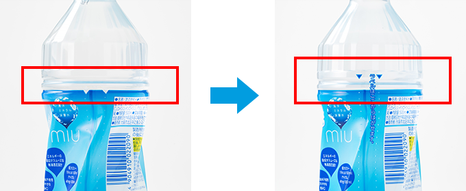 ラベル上部が容器の溝にかからないように延長しました。【アクアジュエルボトル対象】・和果ごこち ゆずれもん(2017年1月~)・ミウ プラススポーツ(2017年4月~)