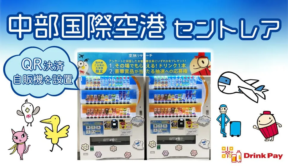 自販機でお客様の満足度向上&店舗スタッフの業務負荷軽減!中部国際空港セントレアにQRコード決済自動販売機『Drink Pay』を設置