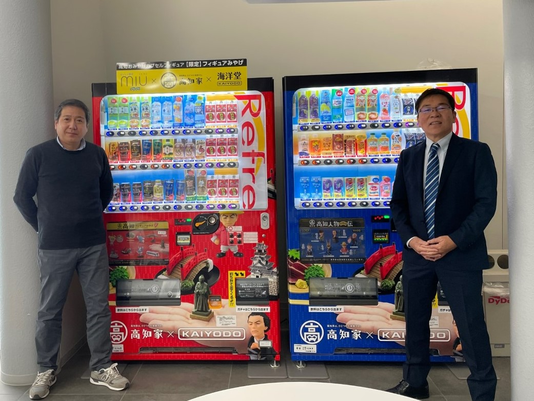 当時、観光地に『高知フィギュアみやげ』ガチャガチャの機械を置いてもらっていて、高知県内で30~40台ほど展開をしていたのですが、トラブルや修理対応など結構手間がかかっていたんです。そこで何となく「こんなカプセルフィギュアがあるんで、自動販売機で売ったらどうですかね」と話したら、中原さんがめちゃくちゃ食いついてくれました(笑)