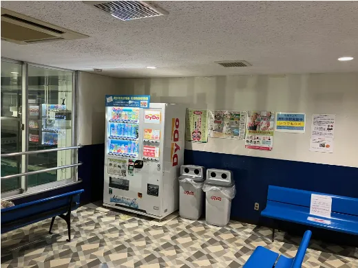 昔はカップラーメンやコモパン・ハンバーガーの自動販売機を置いていたのですが、食品サービスの減少などの理由で撤去しました。今はアイスクリームの自動販売機のみ置いております。