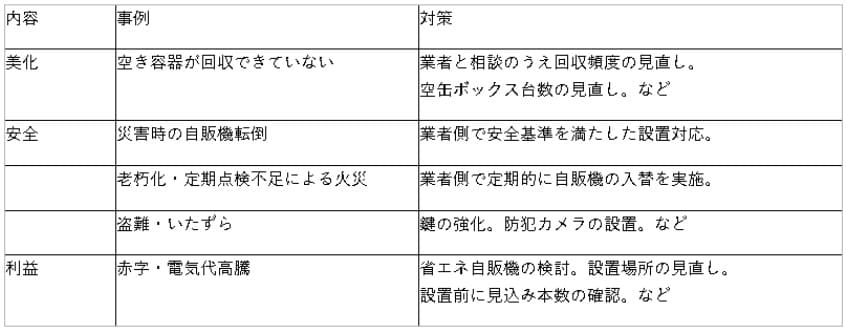 自動販売機を設置する際に事前にご相談させていただく内容は以下の3点です。