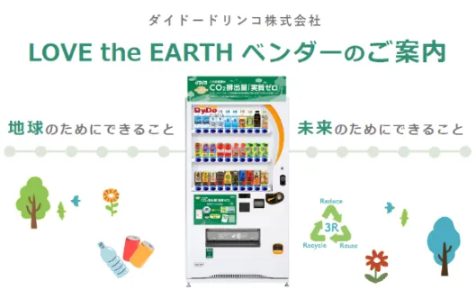 CO₂排出量実質ゼロの「LOVE the EARTHベンダー 」では、電力使用が必須の自動販売機でカーボンニュートラルに取り組むことが可能です。