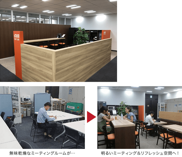 ダイドードリンコは自動販売機だけでなく、リフレッシュスペースやコミュニケーションスペース、喫煙所、必要な備品など空間トータルでご提案させていただいております。協力会社×DyDoの特別プランでコスト削減を実現いたします。