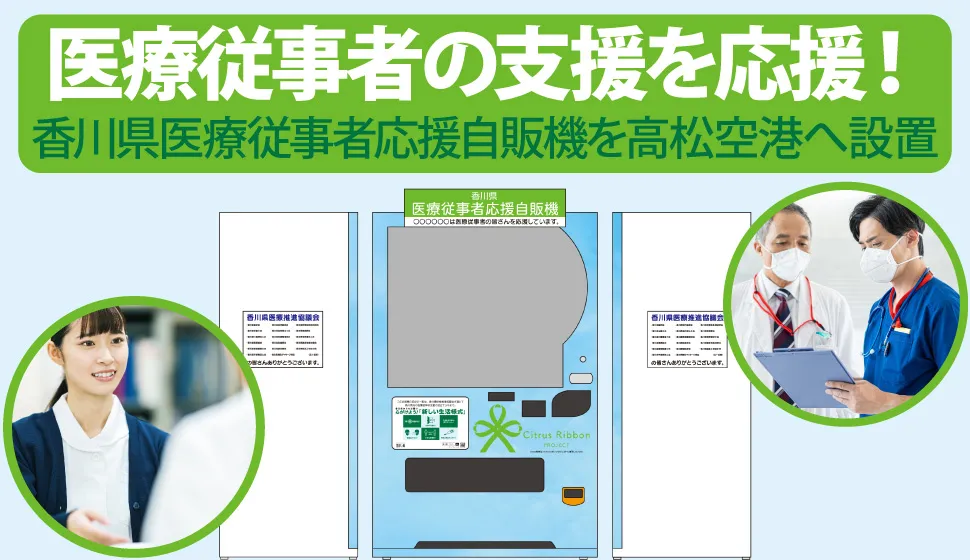 香川県の医療従事者を応援できる自動販売機!「香川県医療従事者応援自販機」を高松空港へ初めて設置しました!