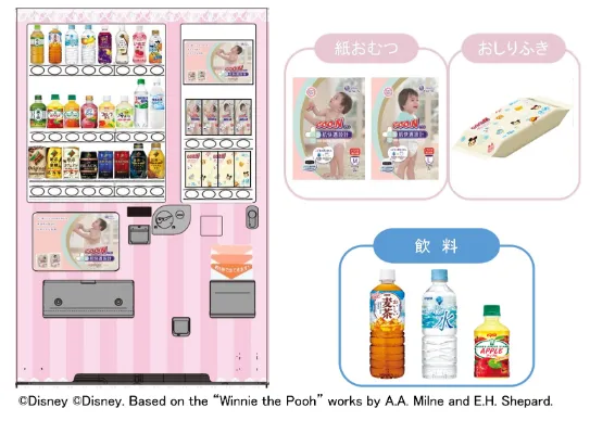 「ベビー用 紙おむつ自販機」は、飲料と紙おむつのコラボレーションを実現した自販機です。