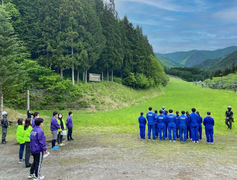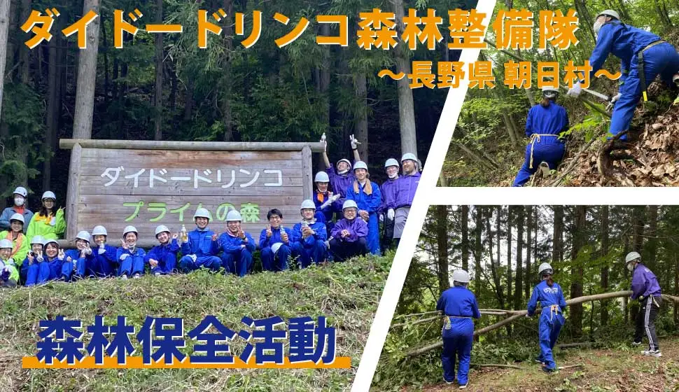 今年は新入社員研修の一環として、5月26日に朝日村職員の皆様と当社従業員22名が参加し、林縁や遊歩道の整備を行いました。