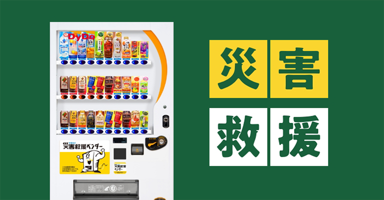 緊急時に中の商品を無償で搬出・提供していただける災害対応型の自販機です。普段は通常の自販機として利用できるため、スペースを有効活用した防災対策ができます。
