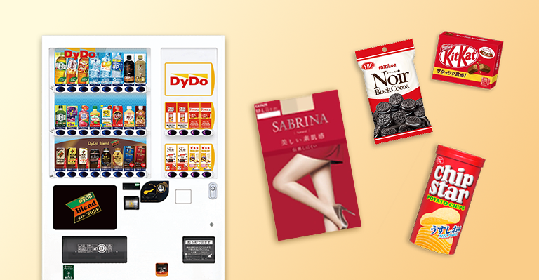 お菓子や軽食類はもちろん、生理用ナプキンやストッキングも販売可能です。 -