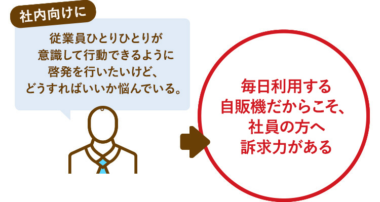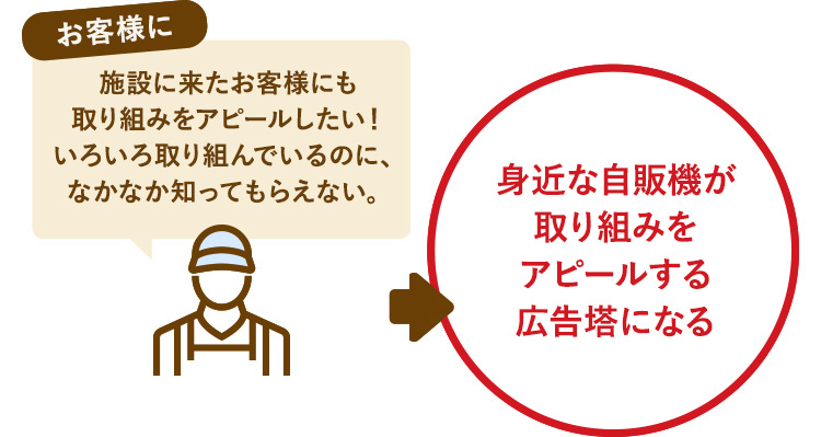 特徴のある自販機で多くの方に注目していただき、同時に環境配慮の取り組みができることに興味を持ちました。