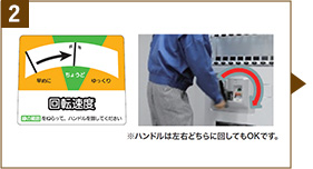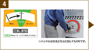 メーターの針が「ちょうど」の範囲になるような早さで、緑ランプが光るまで70回以上回す。
