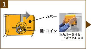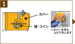 停電時、専用の鍵を回して、点灯したボタンを押すだけで簡単ですね。