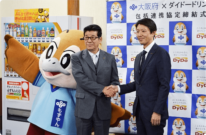 2019年1月9日、ダイドードリンコ株式会社は、大阪府と「府政のPR」「地域活性化」「子ども」「防災」など6分野にわたる連携と協働に関する包括連携協定を締結いたしました。本協定は地方創生を通じて個性豊かで魅力ある地域社会の実現に向けた取組みが進む中、当社と大阪府が連携・協働した活動をより一層深化させることを目的に締結したものです。