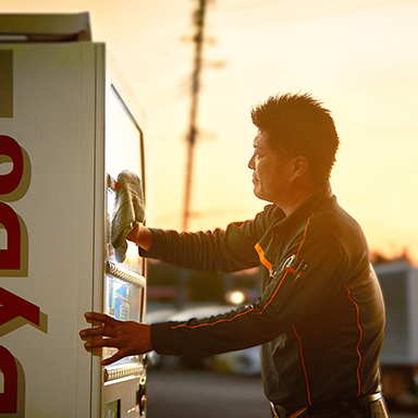 空き容器の回収や、外観の清掃を行い、自販機周りをきれいな状態にします。