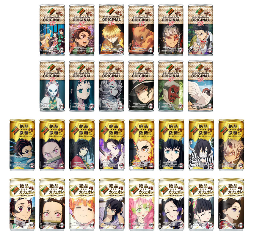 そしてこの度、45周年を記念して、大人気TVアニメ「鬼滅の刃」とのコラボを実現。「ダイドーブレンド ダイドーブレンドコーヒーオリジナル」に加え、「ダイドーブレンド」ブランドより今回新たに発売する「ダイドーブレンド 絶品微糖」と「ダイドーブレンド 絶品カフェオレ」にも「鬼滅の刃」をデザインし、3品で計28種類の「鬼滅の刃」デザインパッケージを発売。