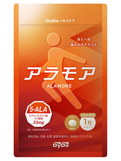 そこで今回、“5-ALA”に加え、相性が良い“鉄※4”と“亜鉛”を配合し、一日一粒の摂取で年齢に負けずイキイキと過ごしたい、頑張る気力を応援する「アラモア」を新たに発売。「ロコモプロ」をご愛用いただくお客様のイキイキとした生活の実現を様々な面からサポートしてまいります。