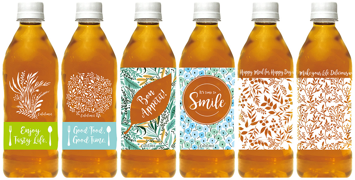 原材料や栄養成分表示を外装箱にのみ記載し、商品パッケージは全面デザインを採用。食事がよりおいしく、楽しくなるデザインに仕上げました。ランチョンマットなどの食に関わるアイテムをイメージしたいつもの食事を華やかに演出するデザインで、「食事をもっと楽しく!」します。厳選した5種のお茶素材である、はとむぎ、緑茶、ほうじ茶、烏龍茶、コーンをブレンド。そこに「大人のカロリミット®」のサプリメント素材である桑の葉、ブラックジンジャー、茶花の3種を配合。はとむぎの香ばしさとコーンのほのかな甘さ、茶葉のコクがベストマッチした後味すっきりの飲みやすいヘルシーな味わいに仕上げました。<全6種類のデザイン>