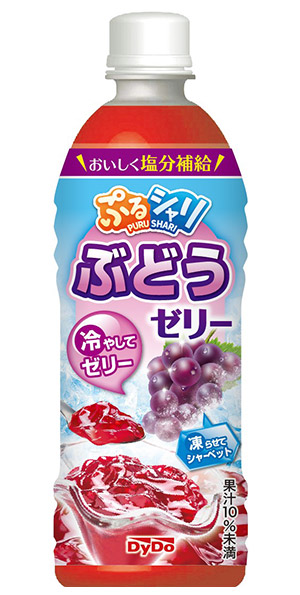 そうした中、今回「ぷるシャリ」シリーズから小腹満たしと熱中症対策の2つのニーズを満たす「ぶどうゼリー」を発売。シリーズの特長であるゼリーとシャーベットの2つの楽しみ方で “おいしい塩分補給”をご提供いたします。