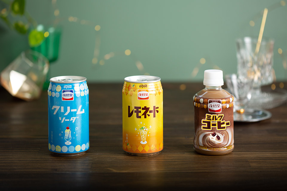そこで、「復刻堂」ブランドの世界観をより一層お楽しみいただける「復刻堂 クリームソーダ」「復刻堂 レモネード」「復刻堂 ミルクコーヒー」を新発売。懐かしさを感じる味わいで、ノスタルジックな気分をお楽しみください。