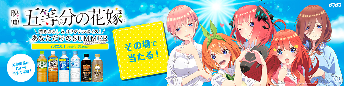ダイドードリンコ×映画『五等分の花嫁』がコラボ!「あなただけのSUMMERプレゼントキャンペーン」実施!オリジナルグッズがその場で当たる!オリジナルボイスが聴ける!