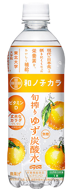 そこで今回、東北大学大学院農学研究科が栄養素の摂取量と推奨量を監修し、幅広く飲用されている無糖炭酸水をベースに、ビタミンDを補給できる「和ノチカラ 旬搾りゆず炭酸水」を新発売いたします。