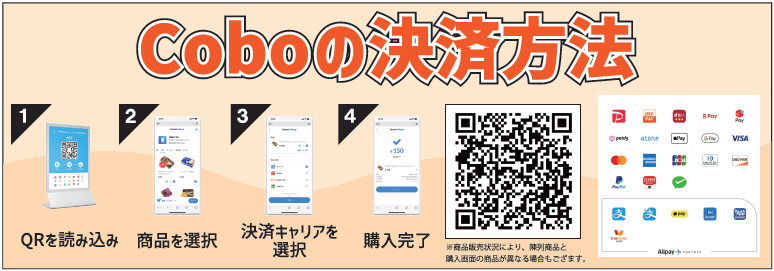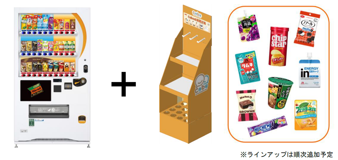 この度、新たに展開する「Cobo(コボ)」(Communication box)は、法人様のオフィスなどにおいて、当社が提供する飲料自販機とは別の「棚」でお菓子やカップ麺などの軽食を販売するサービスです。利用者は、完全キャッシュレス(QRコード※)で商品をお買い求めいただけます。