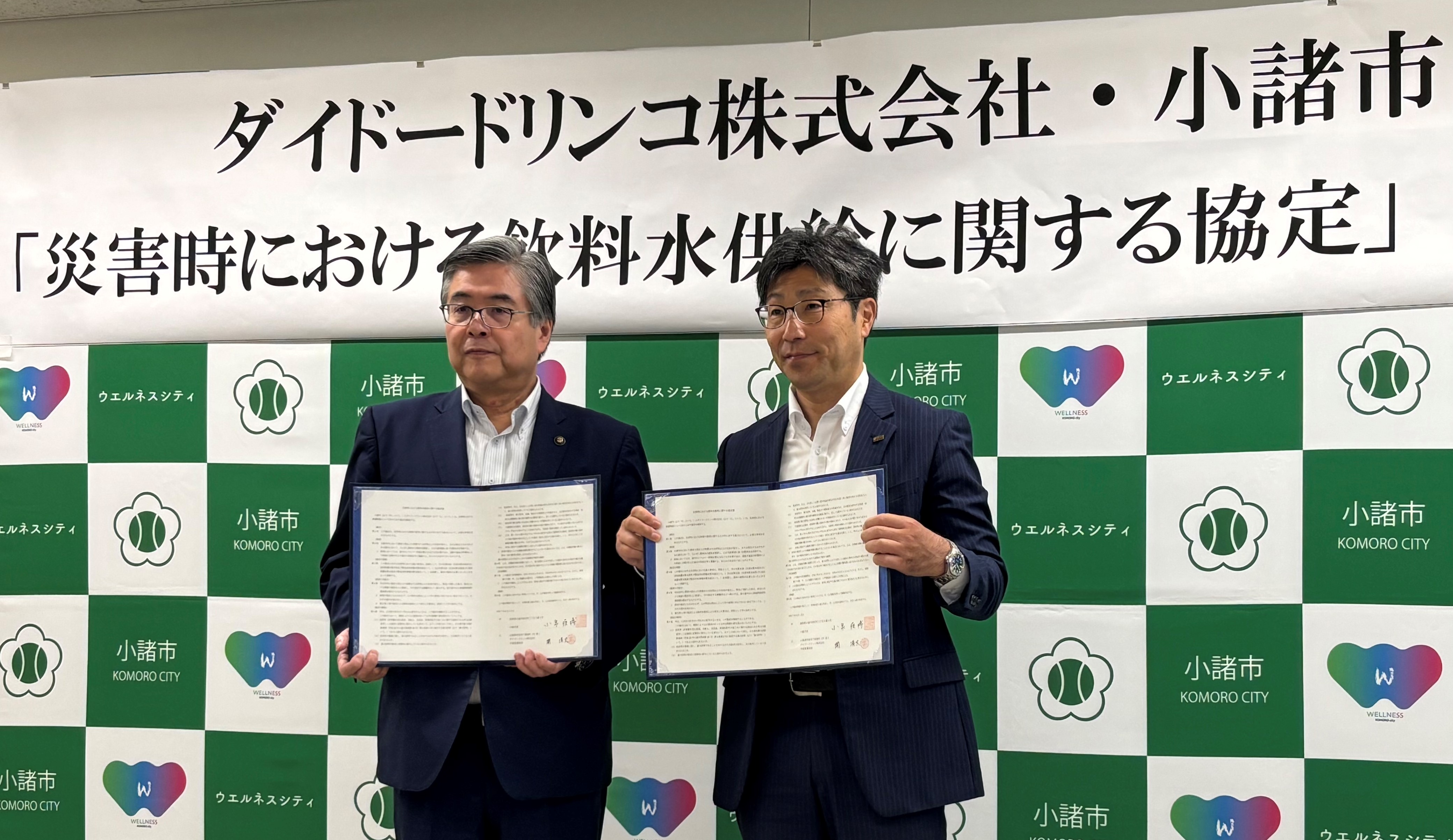 ダイドードリンコ株式会社(本社:大阪市北区、代表取締役社長:中島 孝徳)は、長野県小諸市(以下「小諸市」)と小諸市で甚大な災害が発生し、避難所等を開設した場合に、小諸市からの要請に基づき飲料水を供給することを目的とした災害時における飲料水供給に関する協定(以下「本協定」)を、6月19日(木)に締結しましたので、お知らせいたします。