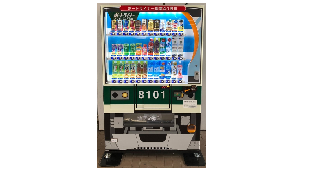 【参考情報】開業当時の車両が自動販売機でよみがえる!?ポートライナーの車両をデザインしたラッピング自動販売機を設置 ()