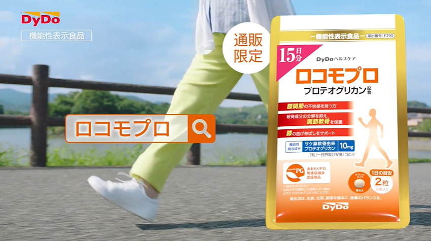 【参考情報】【DyDoヘルスケア】ひざ関節の不快感を持つ方の軟骨成分の分解を抑制「ロコモプロ」(機能性表示食品) 新TV-CM放映を開始