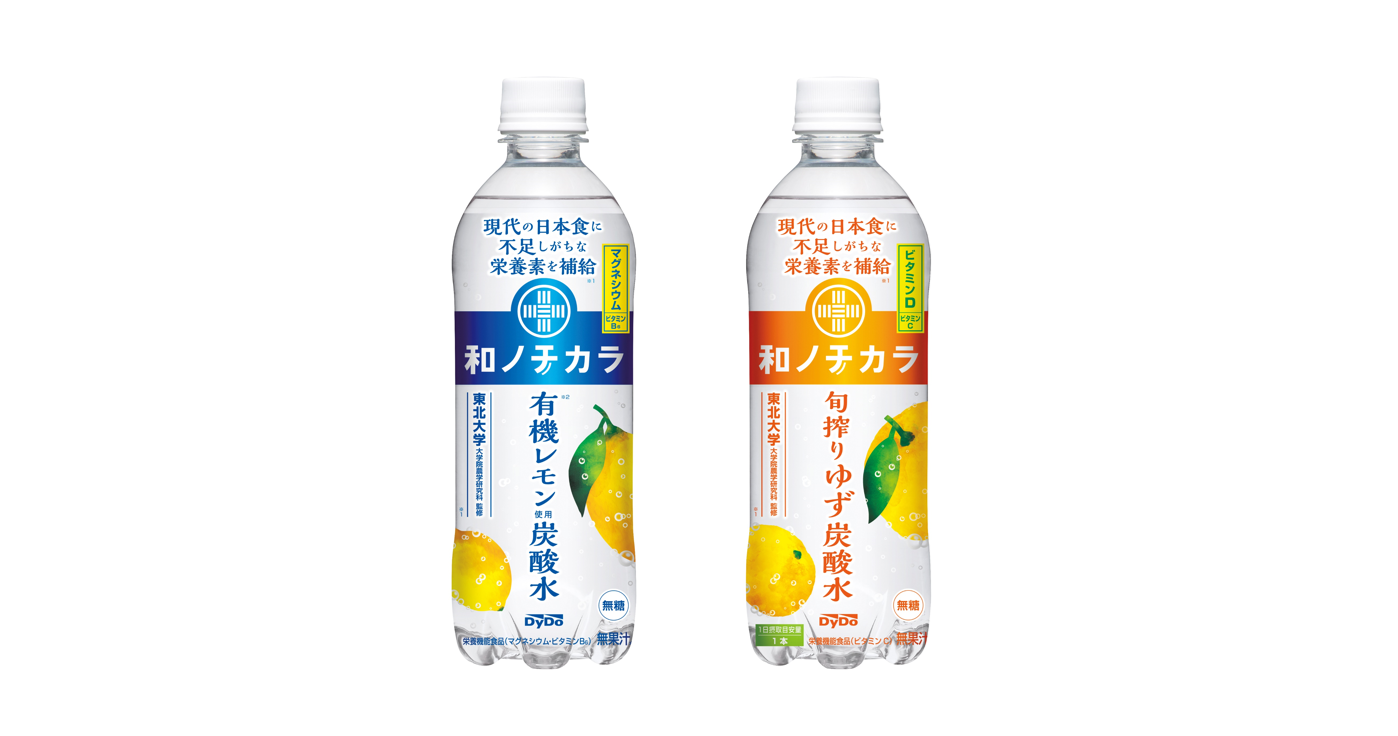「和ノチカラ 有機レモン使用炭酸水」「和ノチカラ 旬搾りゆず炭酸水」 -